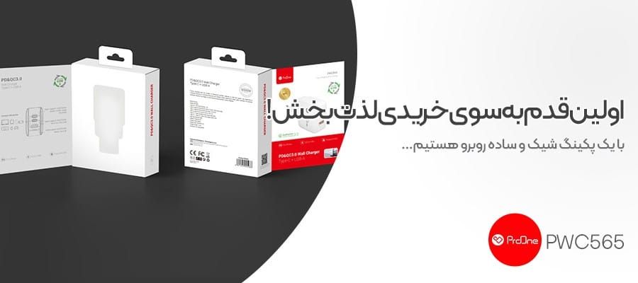 بسته بندی شارژر دیواری پرووان مدل PWC565 دقیقاً همان چیزی ست که از یک برند حرفه ای انتظار می رود: ترکیبی از سادگی مدرن، شفافیت اطلاعات و اعتبار بصری. استفاده از رنگ سفید با هویت قرمز برند، حس اعتماد و کیفیت را از همان ابتدا منتقل می کند. در نمای جلویی، تصویر شارژر به وضوح نمایش داده شده و تمامی ویژگی های کلیدی مانند توان خروجی 65 وات، پشتیبانی از PD و QC3.0، و نوع درگاه ها (Type-C و USB-A) با آیکون های گرافیکی واضح مشخص شده اند. همچنین وجود نشان اصالت کالا و خدمات پس از فروش، خیال مشتری را از بابت خرید راحت می کند. این بسته بندی، نه تنها چشم نواز است، بلکه هوشمندانه طراحی شده تا در یک نگاه، تمام آنچه باید بدانید را به شما بگوید.